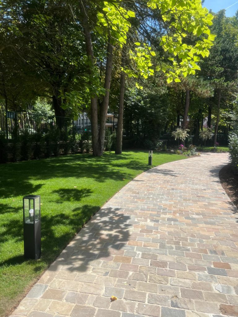Nos réalisations professionnelles reflètent la diversité de nos interventions : parcs, cours d’établissements, accès de bâtiments publics, copropriétés, résidences neuves et projets architecturaux.